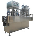 整機(jī)由機(jī)架、自動(dòng)落杯、灌裝、光電、打碼、熱封口、封切、廢膜回收等部件組成。塑盒(杯)經(jīng)自動(dòng)落杯處落入鋁板,鋁板前進(jìn)入一個(gè)工作位置后,灌裝氣缸開啟進(jìn)行灌料(容量大小可調(diào)節(jié)閥門)打印日期,光電熱合,自動(dòng)對(duì)芯切刀同時(shí)工作,廢膜經(jīng)回收裝置進(jìn)行回收,較后成品輸出。
